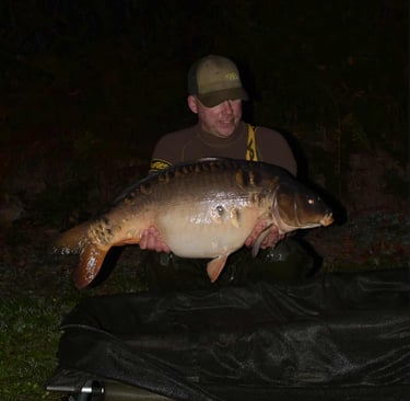 The contrast between warm days and cold nights often gets the carp moving, and that certainly proved true this week. Despite the chill, the lake came alive at night, producing the vast majority of bites in the dark hours — all but one carp came between 10 p.m. and 8 a.m., keeping the lads busy through the small hours.