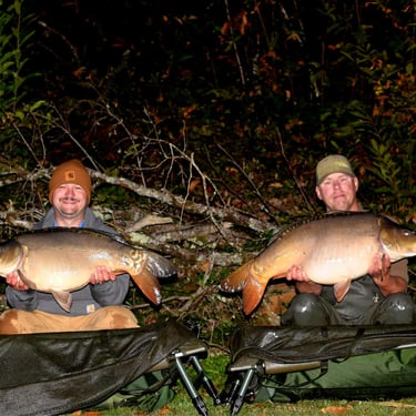 We’ve just wrapped up another memorable week here at Compton’s Lakes in Bussière-Galant, France, with returning anglers Liam and Liam (better known as Pee-wee) enjoying a full Sunday-to-Sunday session. The pair are no strangers to our lake — this was Liam’s fifth visit and Pee-wee’s second — and as always, it was fantastic to have them back on the banks for another week of quality fishing, good company, and a few laughs along the way.
